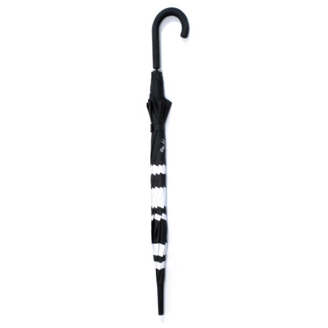 描述: 190T春亚纺布、10毫米电镀黑色铁中棒、金属伞架、魔术贴伞带和弯曲胶手柄